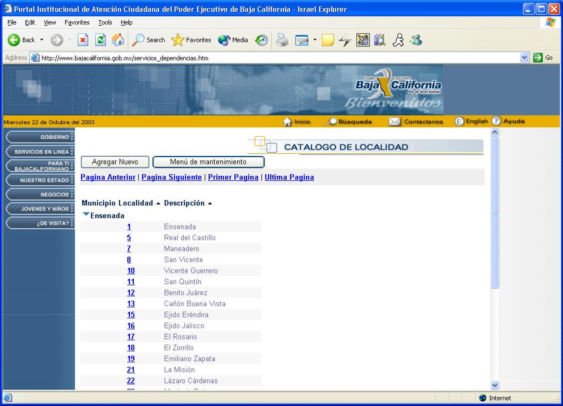 que corresponden a la dependencia seleccionada. Con los botones de navegación