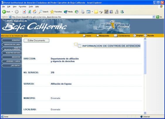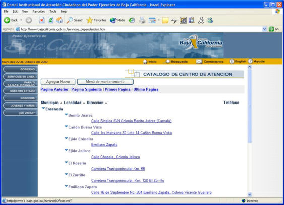 así como el contenido de los centro de atención y localidades,