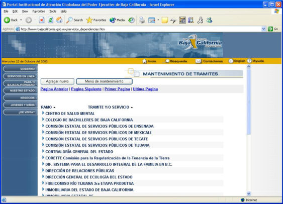 Este presentara un listado de los tramites actuales, además